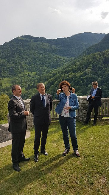 Yesterday’s esteemed speaker, the Minister of Foreign Affairs, Mr. Karl Erjavec, also believes that by awarding the EHL to Javorca, the European Commission made an exceptional gesture. In his speech, he pondered about how an individual would think that after a million of soldiers fallen in World War I such tragedy would never happen again, and that he believes the month of May is the reminder of what men are capable of doing in order to achieve their selfish goals. World War II also happened, and then the Victory Day on May 9, 1945. »All these events convinced us that peace requires constant effort and on May 9, 1950 the French Minister of Foreign Affairs Mr. Robert Schuman prepared the Schuman Declaration with a goal to connect all European nations. It all started with six countries. Later, more countries joined and 14 years ago, the Republic of Slovenia also joined the European Union. European Union is the guarantee for peace, which is why it must be cultivated. We are working diligently to accept other countries of the Western Balkans into this European family. Europe is our future. It is currently facing various challenges. It did not expect that life in peace will not be self-evident. I am holding the office of the Minister of Foreign Affairs since 2012 when it seemed that peace is self-evident, however, everything has changed all of a sudden. I believe that it is very important to cultivate symbols of reconciliation between different nations, such as Javorca. When you are standing here and ponder about what happened in the past and how people suffered during a certain period you realize that peace is the highest value, because if there is no peace, there is no development, future or perspective for the youth. Moreover, the European Union provides also other opportunities in the economic and scientific field and especially exceptional opportunities for the young generation,« continued Minister Erjavec.